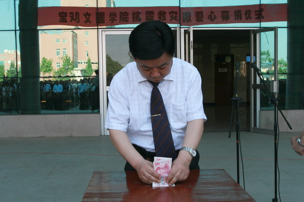 “一方有难,八方支援”,“开元集团网站抗震救灾献爱心募捐仪式”于5月19日下午分别在新老校区举行。党委书记赵怀礼,院长王志刚,党委副书记米晓东、李全武,副院长傅志军、王普藩、赵荣侠分别参加了新老校区募捐仪式。米晓东、李全武作了讲话。赵荣侠、傅志军分别主持了募捐仪式。