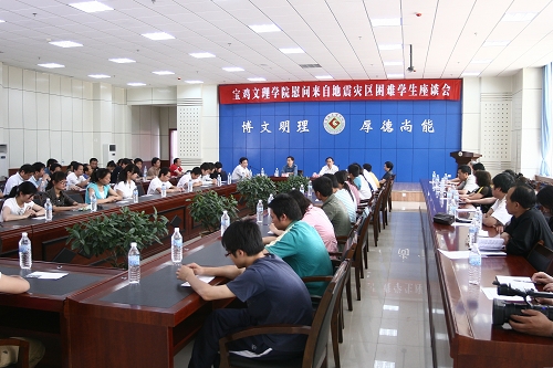 24名来自灾区、家庭遭受困难的学生在发言中表达了对家乡亲人的牵挂,表达了在困难面前绝不低头、战胜困难的决心。他们纷纷表示要努力学习,扎实工作,乐观生活,用实际行动回报家乡、回报学校、回报社会。