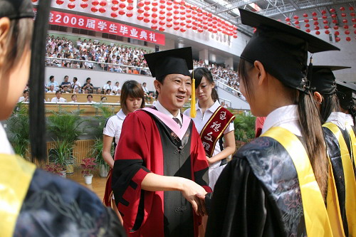 王志刚在讲话中代表学院党政领导和全体师生,对圆满完成学业、即将走上工作岗位的毕业生们表示热烈祝贺,同时对广大毕业生提出了殷切的希望:一要坚定理想信念,把个人的前途与祖国的需要紧密结合起来,在工作岗位上建功立业,做一个具有历史使命感和社会责任心的人。二要不断学习,终身学习,勤于实践,求实创新,做一个事业上不断进取的人。三要发扬文理精神,自强不息,做一个意志坚强,敢于面对挑战,敢于超越自我,成就人生的人。四要学会感恩,懂得回报,一生善待“三位母亲”—— 母亲、母校、祖国;不要忘记“三个地方”—— 出生之地、求学之地和工作之地,做一个诚实守信、知恩图报的人。他还诚挚邀请毕业生们在学院50华诞的时候回母校共襄盛举。