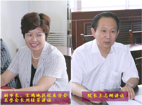 院长王志刚代表学院党委和行政向前来聚会的校友们表示欢迎,对校友在事业上做出的突出成绩表示祝贺,并从学院办学历史、师资队伍、学科建设与科学研究、优势特色、人才培养、服务地方等七个方面介绍了学院的基本情况。最后,王院长希望校友发扬第一届校友会的精神,继续支持学院的建设和发展,为母校建设献计献策,在第一届校友会工作的基础上,开展第二届校友会工作;希望在50年校庆时,以多样的形式,使更多的校友参与学院50年庆典活动;希望宝鸡地区校友会能加强与母校联系,联系校友,多接触、多交流,为本届校友会多做工作。