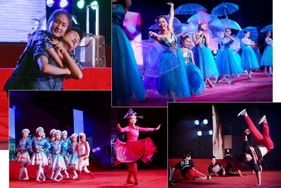 欢快优美的开场舞《站在梦想新起点》拉开了晚会的序幕。整场晚会分为上篇“青春梦”和下篇“中国梦”。充满青春活力的歌曲联唱《我们的梦》、舞蹈《诺恩吉雅》、街舞《炫舞青春》、歌伴舞《和你一样》彰显了新时期大学生的青春风采和对未来美好生活的向往;诗朗诵《少年中国说》表达了文理学子坚持远大理想、奋发努力学习、立志报效祖国的坚定决心;歌伴舞《儿行千里》、《妻子》旋律优美,真挚感人,唱出了新生对父母及军训教官的感恩与祝福;歌伴舞《我爱你中国》旋律高亢振奋,让现场的每位观众深深的感受到了新时期青年大学生对祖国无限的热爱和为实现伟大“中国梦”的坚定信心和决心;舞蹈《翻身农奴把歌唱》、《江山》表达了文理人对祖国母亲的深情祝福;歌舞《祖国有我》作为晚会的压轴节目,表达了文理人对党抒不完的爱戴与诉不尽的深情,更是将整台晚会推向了高潮。最后,2013级新生表演的激昂奋进的校歌,唱出了文理学子的豪情壮志和对学校“十二五”发展前景的美好憧憬;在《祖国有我》的优美旋律中,校领导走上舞台,与演职人员一一握手,祝贺演出成功并合影留念。