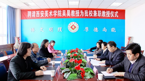 会后,校党委书记王志刚会见了吴昊教授,并与他进行了亲切交谈。党办主任王永君、人事处处长宋崇碧、学科建设与研究生教育管理处处长吴毅、美术系主任刘进锁、系党总支书记唐晓育、系副主任王宝强教授参加了聘任仪式。