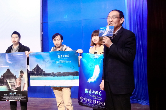 展映前,剧组人员就影片的拍摄初衷、拍摄选址、拍摄过程等向师生进行了说明。展映活动结束后,剧组人员向学校赠送了剧组人员签名的宣传海报,并与现场观众进行了互动,取得了圆满效果。(党委宣传部供稿)