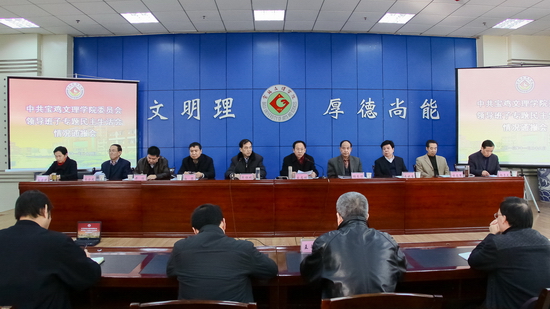 根据省委的统一部署和省委高教工委群众路线教育实践活动总体安排,在省属高校群众路线教育活动第二督导组的指导下,11月27日至28,学校召开了领导班子专题民主生活会,报告了遵守党的政治纪律情况和贯彻落实中央八项规定情况,查摆了“四风”方面存在的突出问题及表现形式,对师生所提意见建议及有关问题进行了检查与说明,以整风精神开展了批评和自我批评,深入分析了产生问题的原因,提出了今后的努力方向和改进措施。