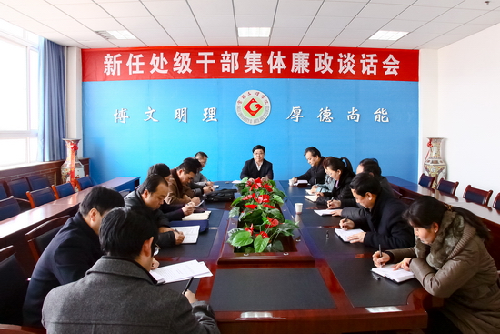12月26日下午,校纪委在新校区第一会议室举行新任处级领导干部集体廉政谈话会。校党委副书记、纪委书记米晓东讲话,纪委副书记邓忠良主持。