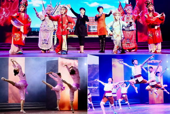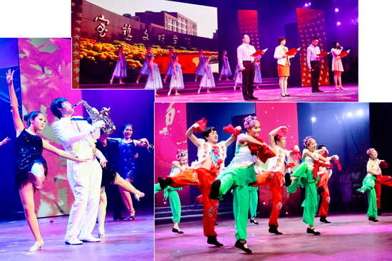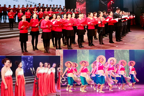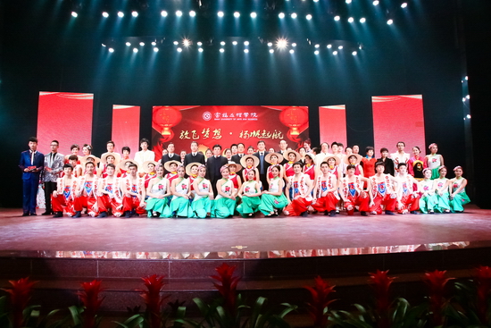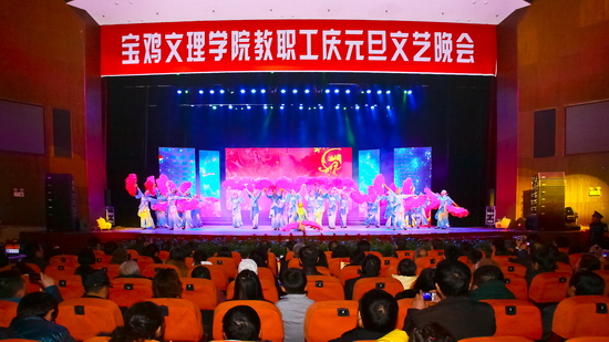 晚会在舞蹈《花开幸福》宏大的场面中亮丽开场,春华秋实满载去,花开幸福迎春来。舞蹈《马蹄声声》、《欢庆》、《花木兰》、《丰收歌》,以不同的表演形式给观众带来了优美的视觉享受,既潇洒自如、活力四射,又优雅柔美、脉脉含情。女生小合唱《猜调》,充分展示了开元女教职工的艺术造诣。群口快板《夸夸文理地环院》、秦腔新唱《文理明天更美好》、诗朗诵《光荣与梦想》,歌颂了文理人在十年申硕路上付出的艰辛、洒下的汗水。如今宝文理站在了新的历史起点,必将孕育出万千可歌可泣的故事神话,《咱老百姓》、《常回家看看》、《纤夫的爱》、《黄丝带》,尽情展示了文理大家庭的和谐美好、幸福吉祥。校领导表演的小合唱《团结就是力量》、《江山》,让我们看到了学校领导班子跨越梦想、缔造辉煌的坚强信念,文理人必将在未来的发展征程中《放飞梦想扬帆启航》。晚会在舞蹈《黄河魂 中国梦》震撼的表演氛围中圆满落下帷幕。晚会结束后,学校党政领导与演职人员合影留念。