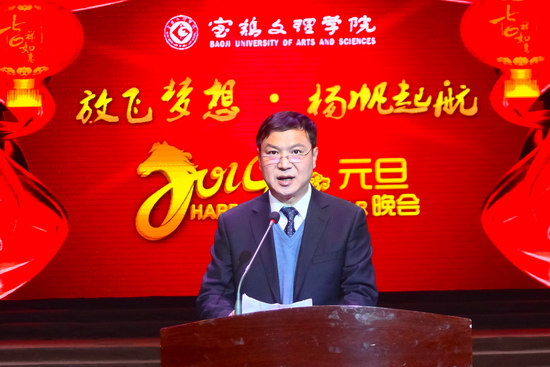 他说,新年开启新希望,新年承载新梦想。在新的一年里,让我们认真贯彻落实党的十八大、十八届三中全会精神,围绕学校“十二五”时期确立的历史任务,以内涵式发展为主题,以开展研究生教育为契机和新的起点,以提高教育教学水平和人才培养质量为根本目的,以深化改革为动力,以加强党建和人才队伍建设为保障,全校上下团结一心、相互配合、锐意改革,扎实工作,为早日实现建成宝鸡大学的宏伟目标而不懈努力!