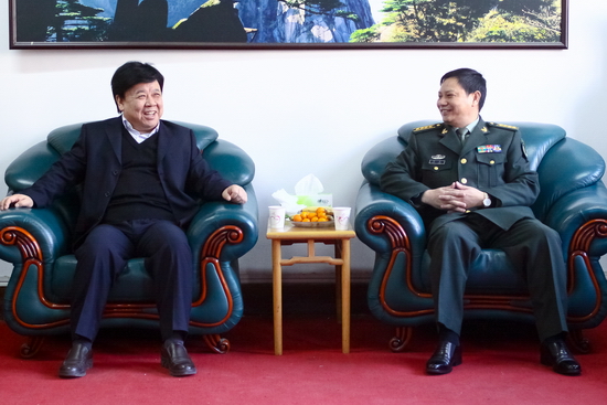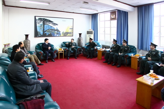周荣对学校过去一年来所取得的成绩表示高度赞赏,对学校的发展充满信心。并对学校长期以来,特别是过去一年对部队的关心支持表示感谢!他简要地介绍了部队建设和国防任务完成情况,并表示部队将进一步加强与学校的合作与交流,一如既往地支持学校做好大学生军训、国防教育等工作,进一步拓宽军学合作的领域。