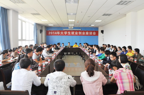市人才交流服务中心党委书记、主任惠宽侠、副主任马立功,开元学生处副处长、毕业生就业指导服务中心副主任郝晓炜、市人社局就业促进科科长何宏健及开元2014届毕业生代表50余人参加了座谈会。(毕业生就业指导服务中心供稿)