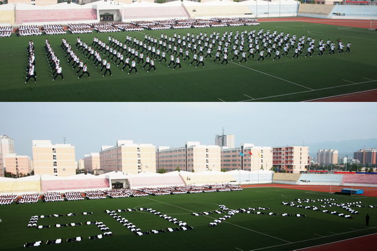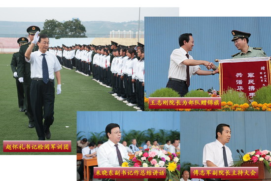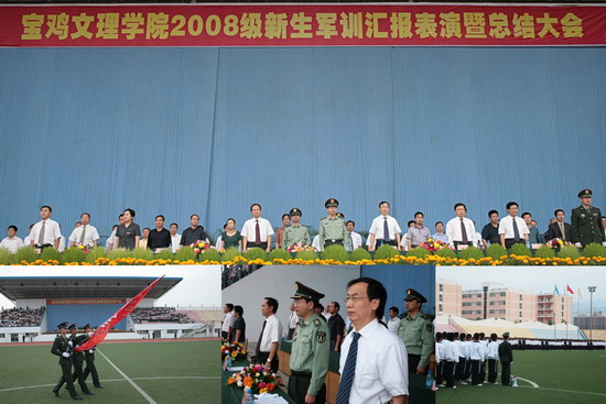 9月17日下午,学院在新校区体育场举行2008级新生军训汇报表演暨总结大会。96401部队首长万中山副政委、院党政领导出席大会。副院长傅志军主持大会。
