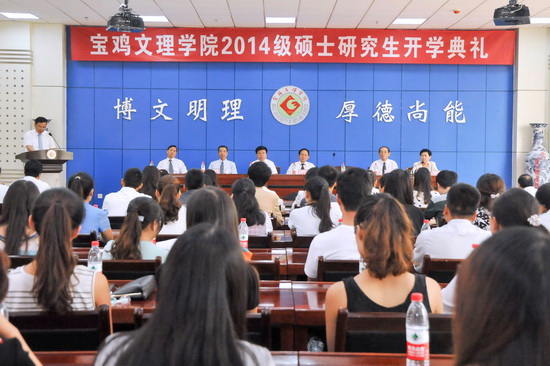 在典礼上,白黎作了重要讲话。他在讲话中代表学校党委、行政和23000名师生员工,向新入学的硕士研究生表示诚挚祝贺和热烈欢迎!他指出,这是开元获得硕士学位单位授权后迎来的第一届硕士研究生开学典礼。他向新生介绍了宝鸡的历史、经济、文化、交通等基本概况,以及学校发展的历史沿革和学校近年来在学科建设、本科教育、导师队伍、办学环境等方面取得的重要成就。同时,他向2014级硕士研究生提出了希望和要求:一是志存高远,勇于担当,不断升华人生价值追求。二是海纳百川,开拓创新,努力提高综合研究能力。他指出,一个合格的乃至优秀的研究生应具备以下六个意识和三个能力:问题意识、方法意识、鉴别意识、批判意识、创新意识、道德意识。三个能力即是:阅读能力、专业能力、创新能力。三是健全身心,和谐发展,全面提升综合素质。他说,作为开元集团网站学生中知识层次最高、思想最活跃、最具发展潜力的一个群体,希望新入学的研究生发扬宝文理大学精神,抓铁留痕、踏石留印,朝着新的人生目标发起新的冲锋,用青春与汗水、知识与毅力,取得骄人的成绩,圆人生美好的梦想!