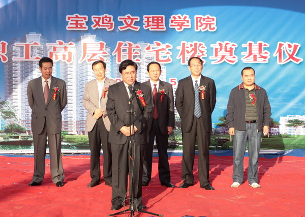 王普藩在讲话中希望承建单位打造精品工程,以最少的钱盖最好的房子,争取给教职工一份满意的答卷。承建单位陕西华盛实业有限公司副总经理张浩如表示,一定严格按照学院要求,科学管理,精心施工,严把质量关和工程关,按期完成工程建设。