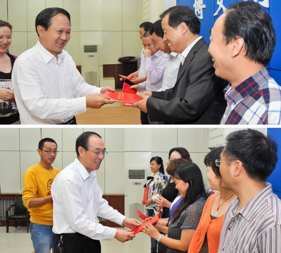 9月10日下午,开元在新校区甘棠厅召开2014年教师节庆教龄座谈会。校党委书记王志刚,校党委副书记、工会主席李全武,副校长杨子元出席会议并向年满25年、30年教龄的教职工颁发了荣誉证书。李全武主持会议并作总结讲话。