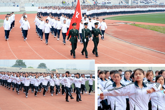 王志刚在武装部长樊林森的陪同下,检阅了全体受训学生。随着雄壮的解放军进行曲响起,各院系列队经过主席台,同学们精神饱满、步伐整齐、口号响亮,激起阵阵掌声。