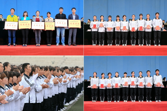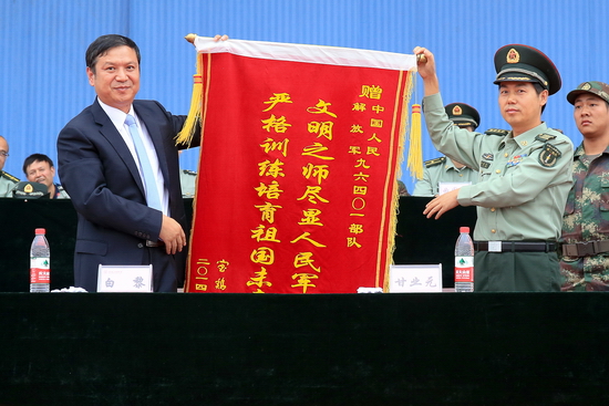 汇报表演结束后,白黎向96401部队赠送了锦旗。学工部部长李周让宣读了军训领导小组对军训工作先进单位和军训标兵的表彰决定。校领导和部队首长为受表彰的单位和个人颁发了奖牌和证书。