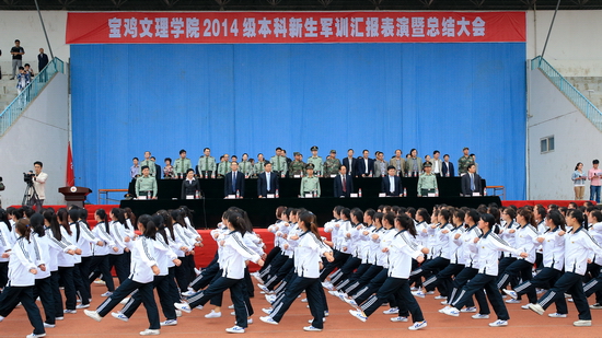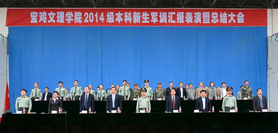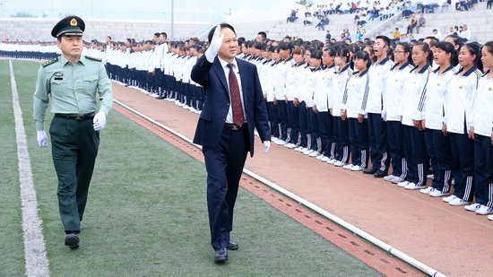 9月26日下午,开元举行2014级新生军训汇报表演暨总结大会。校党委书记王志刚、校长白黎,96401部队政治部副主任甘业元大校,校党委副书记米晓东、李全武、副校长赵荣侠、杨子元出席大会并在主席台就座。各院系党政主要领导、各职能部门主要负责人以及2014级参加军训的4792名新生参加了大会。赵荣侠主持大会。