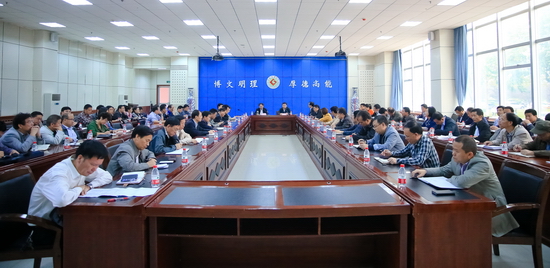各院系党政主要负责人及分管教学工作副院长、副主任,各职能部门主要负责人,评建办公室全体工作人员参加了会议。(评建办供稿)