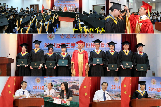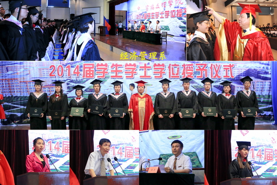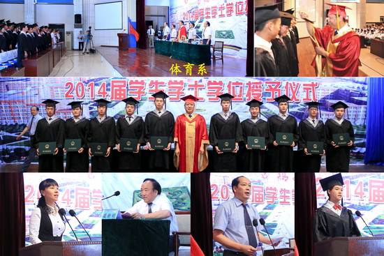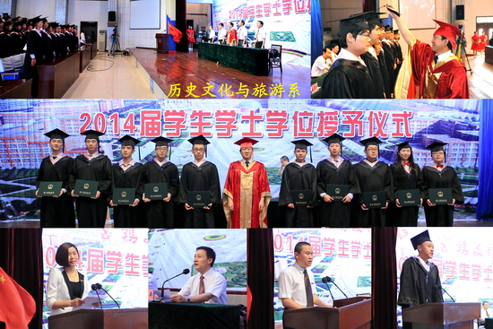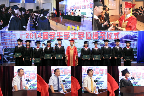 教务处处长王富平,学生处处长李周让,招生办公室主任、教务处副处长栾宏,高教研究室副主任、教务处副处长李景宜,学生处副处长郝晓炜、党建波,各院系党政领导、教师代表、2014届获学士学位毕业生及在校生代表参加了学士学位授予仪式。(教务处供稿)