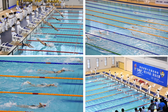 8月16日上午,陕西省第十五届运动会“启康杯”(青少年组)游泳比赛在位于开元西北角的宝鸡市游泳馆拉开帷幕。据悉,本次比赛共有来自西安、咸阳等8支代表队的458名运动员参赛,参赛队员将在为期5天的比赛中展开激烈角逐。比赛中,游泳健儿们在水中奋勇拼搏,观众们在看台上欢呼呐喊。游泳跳水馆外观漂亮、内部场地规格高,可承接各种全国性的游泳、跳水赛事,也方便市民、游泳爱好者了解、观看这类竞技项目。(党委宣传部供稿)