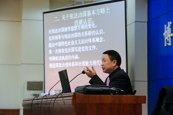 报告会上,杨文杰从《决定》内容的逻辑关系入手,深刻分析了《决定》各部分之间的关联。在此基础上深刻阐释了《决定》的基本内容。随后,他就《决定》在依法治国方面的新认识和新的改革举措进行了深入讲解。杨文杰的报告既有对《决定》逻辑关系的分析,也有对依法治国方略的深刻阐释,还有对依法治国新举措的深入分析,思路清晰,内容丰富,联系实际,深入浅出,富有感染力。