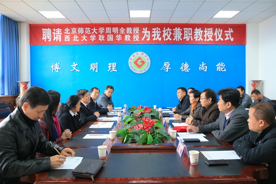 校长办公室主任任红亮、学科建设与研究生教育管理处处长吴毅、计算机学院党总支书记范英、计算机学院院长李乃乾、政法学院院长石玉平、历史文化与旅游系系主任高强、周秦伦理文化与现代道德价值研究中心副主任王兴尚参加了聘任仪式和座谈会。
