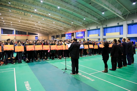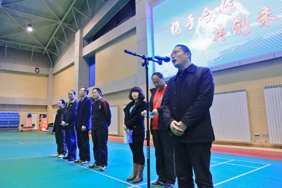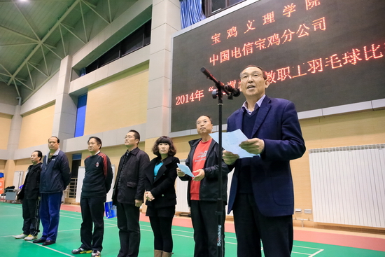李全武代表学校党政向本次羽毛球赛的如期举行表示热烈祝贺!向为本次活动精心策划、积极准备作出贡献的体育系、各院、系部门党政工领导、运动员表示衷心的感谢!向为本次赛事工作的裁判员及工作人员表示崇高的敬意!向为本次活动提供赞助的中国电信宝鸡分公司和桐乡波力科技有限公司的鼎力支持表示衷心的感谢!他希望裁判人员忠于职守,公正裁判,确保每一项比赛成绩都真实可靠、准确无误;希望各参赛团队和全体运动员抱着“我运动、我健康、我快乐”的心态,积极参赛、尊重裁判、顽强拼搏、赛出风格、赛出水平,将本次比赛办成一次促进开元教职工全民健身的盛会!