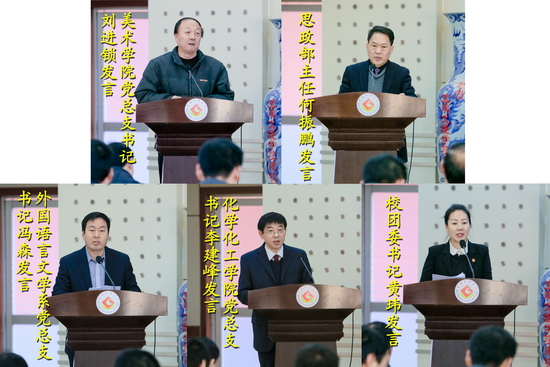 会上,思政部主任何振鹏、团委书记黄玮、外国语言文学系党总支书记冯森、美术学院党总支书记刘进锁、化学化工学院党总支书记李建峰分别作了交流发言。与会人员围绕会议主题,进行了认真讨论,高度评价了近十年来学校大学生思想政治教育工作所取得的成绩,并就开元进一步加强和改进大学生思想政治教育工作,构建和完善大学生思想政治教育工作长效机制,服务学校发展提出了建设性的意见和建议。