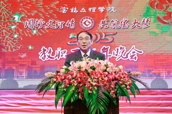 校长白黎在晚会开始前发表了热情洋溢的新年致辞。他代表学校党委和行政向辛勤工作、默默耕耘在教学、科研、管理、服务岗位上的全体教职工,向青春勃发、勤奋苦读的莘莘学子,向热情关心、大力支持学校建设发展的离退休老领导、老同志,向心系母校、服务社会的海内外校友,向长期关心、鼎力支持学校事业发展的社会各界人士致以诚挚的问候、良好的祝愿和衷心的感谢!他说,流金岁月,铭刻发展的历程。这一年,巡视诊断工作开展有力,教学质量工程成果喜人,学科建设再度提升,科研项目带动作用明显,师资队伍整体水平持续提升,大学生综合素质和就业竞争能力不断增强,大学文化建设成效显著,后勤服务水平不断提高。在新的一年里,让我们以更加开阔的视野、更加昂扬的斗志、更加扎实的作风、更加执着的努力,抢抓新机遇、迎接新挑战,共同谱写开元集团网站新的华章!