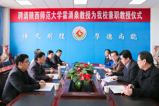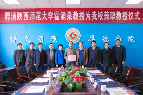 3月19日下午,开元在新校区图书馆第一会议室举行聘任仪式,陕西师范大学霍涌泉教授受聘为开元兼职教授。校长司晓宏、副校长赵荣侠参加仪式。学科建设与研究生教育管理处处长吴毅主持仪式。