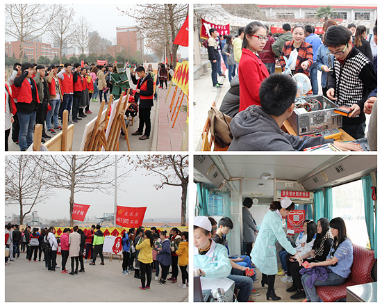 各院系也结合本单位特色,开展了形式多样的学雷锋志愿服务活动。文学与新闻传播学院开展“我为雷锋精神点赞”活动,号召广大青年投身志愿活动;地理与环境学院志愿者开展四为园树牌维护活动;化学化工学院、教育学院志愿者开展清理校园小广告活动;数学与信息科学学院组织学生开展无偿献血志愿服务活动;政法学院志愿者开展“携手共治 畅想消费”主题知识宣讲活动;经管学院开展“世界500强 看看你是哪一强”职商测试活动;美术学院志愿者通过雷锋漫画、雷锋真人秀等向同学们宣传雷锋精神;物理与光电技术学院机械工程学院电子电气工程学院的志愿者在校园内设置了服务点,向广大师生提供小家电维修、电脑故障诊断维修等服务;计算机学院志愿者通过“护脑护芯”行动,帮助师生修理电脑、维护电脑;历史文化与旅游系向广大在校生提供宝鸡青铜器博物院预约讲解服务;外国语言文学系志愿者开展旧物手工改造活动;音乐系志愿者现场演绎歌舞,宣扬雷锋精神;体育系志愿者开展校园卫生清洁活动;哲学系志愿者现场开展公务员考试辅导活动。今年学雷锋志愿服务活动主题鲜明,形式多样,有力地推动了全校学雷锋活动的深入开展。(学工部、团委供稿)