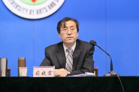 司晓宏作了题为《推进综合改革,加快内涵发展,努力实现建成宝鸡大学的奋斗目标》的讲话,他在讲话中对学校现有的基础、优势和面临的挑战进行了分析。从外部环境方面,他指出了高校间竞争日趋激烈的严峻形势和学校面临的前甩后追的局面。从内部条件方面,学校存在着以下不足和短板:一是学校学科建设和专业建设的整体水平不高;二是师资队伍数量不足,质量有待于进一步提高;三是办学空间狭小,教学和行政办公用房严重不足。在讲到关于学校发展顶层设计和基本思路的思考时,他从三个方面对学校现状进行了分析,并指出学校要向办教学研究型大学的方向靠拢,努力在在“十三五”期间建成宝鸡大学。在谈到办学基本理念时,他强调,学校要坚持内涵发展的理念,坚持进取、竞争、务实的理念,坚持开放包容的理念,坚持依法治校的观念,坚持学校事业发展与教职工和学生发展共赢的理念。他强调指出,关于2015年学校工作总的基调是全面深化综合改革,加快内涵发展。他就今年学校教学、科研、学科建设与研究生教育、教师队伍建设和人事分配制度改革、学生教育和管理、基础设施建设、深化综合改革、完善校内治理体系等方面的工作进行了全面的部署,并提出了明确的要求。他指出,全体教职员工在校党委和行政的团结带领下,要进一步坚定信心,鼓足干劲,以破釜沉舟、背水一战的勇气和精神,为实现宝鸡大学的目标而努力奋斗。