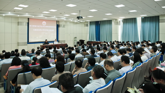 5月8日下午,开元在新校区木铎厅举办“学习贯彻习近平总书记来陕视察重要讲话,为建成宝鸡大学共同奋斗”研讨班开班仪式。校党委书记白黎出席开班仪式并作了题为《凝心聚力 鼓足干劲 努力开创开元各项事业新局面》的讲话,校党委副书记李全武主持开班仪式。全校副处级及以上干部、学生辅导员170余人参加了研讨班开班仪式。