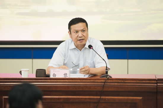 白黎从“三严三实” 的提出以及背景、要开展“三严三实”专题教育的重要意义、突出重点,狠抓关键,从严从实抓教育,持之以恒转作风等三个方面进行了详细的讲解。他指出:习近平总书记提出的“三严三实”是共产党人最基本的政治品格和做人准则,也是党员干部的修身之本、为政之道、成事之要。习近平总书记关于“三严三实”的系列重要论述,为党员干部划定了做人、从政、为官的基本底线,为我们加强新形势下党的建设提供了基本遵循和行动指南。他紧扣“三严三实”要求,结合全校党员干部思想、工作和作风实际,从深化作风建设,守纪律、讲规矩、营造良好政治生态以及锻炼队伍,推进学校事业发展等三个方面论述了“三严三实”专题教育的重大意义。并对照“三严三实”要求,从六个方面对全校党员干部提出了要求,一是要深化学习教育,打牢思想根基;二是要带头示范,突出教育自身为主;三是要强化问题导向,立行立改,立见成效;四是要突出专题研讨,触动思想灵魂;五是要加强组织领导,层层落实责任;六是要统筹协调,做到两不误两促进。并特别强调要突出重点,狠抓关键,从严从实抓教育,持之以恒转作风。他最后强调在开元开展“三严三实”专题教育,具有很强的现实意义,是一场及时雨,是我们“升大”的前提和保证,要求全校广大党员干部特别是领导干部要切实增强责任感和使命感,以对组织、对师生、对自己负责的态度参与到专题教育活动中来,以饱满的热情和有力的举措做好各项工作,确保“三严三实”专题教育取得实实在在的成效。