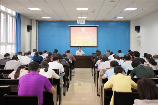 党委办公室、宣传部、机关党委、工会、人事处、审计处、科技处、离退处等单位副科级以上干部、全体党员以及哲学系、物理与光电技术学院、体育系、外国语言文学系等院系副科级以上干部、各党支部书记听取了党课。(党委宣传部供稿)