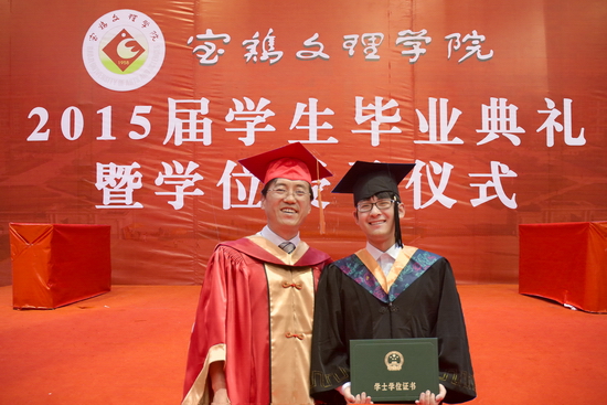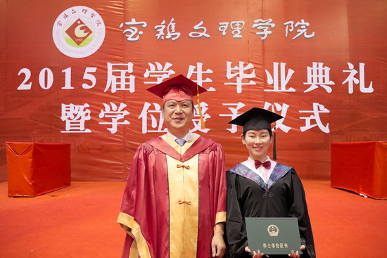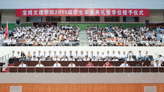 在典礼上,司晓宏校长发表了热情洋溢的讲话,他代表学校党委、行政向圆满完成学业的2015届毕业生表示热烈祝贺。他说,四年来,同学们见证了学校各项事业的蓬勃发展。同样地,也以优异的表现和合格的答卷为学校的发展助添了动力,赢得了光彩,并相信在未来的岁月中,同学们将以为祖国、为人民所做出的突出贡献来为母校赢得更多的社会美誉度。同时,他也向同学们承诺,在未来的几年里,学校将以铿锵的步伐坚定地向着宝鸡大学的宏伟目标迈进,并以跻身教学研究型大学行列的成就来为校友们凭添更多的自豪与骄傲。