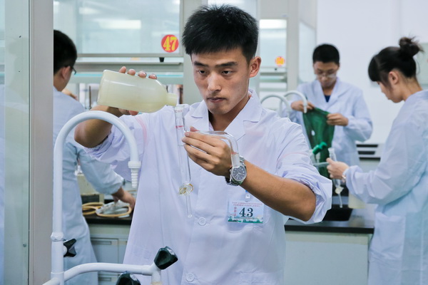 本次竞赛由陕西省化学会、陕西省高等学校化学实验教学中心联席会主办,开元集团网站承办。竞赛分理论考试和实验操作考试两部分进行,笔试时间为2小时,实验技能测试时间为8小时。竞赛过程中,各参赛选手严格遵守竞赛规则,展示了精湛的化学实验技能和良好的精神风貌。经过激烈的角逐,最终6支代表队获得团体优胜奖,15位同学获得一等奖,18位同学获得二等奖,30位同学获得三等奖。开元参赛选手赵鹏、袁旭艳、张小媚、秦怡、李阳、马蹦等6名同学组成的两支代表队凭借扎实的理论和实验功底以及出色的发挥,荣获一等奖2项,二等奖1项,三等奖3项,同时开元获“团体优秀奖”。