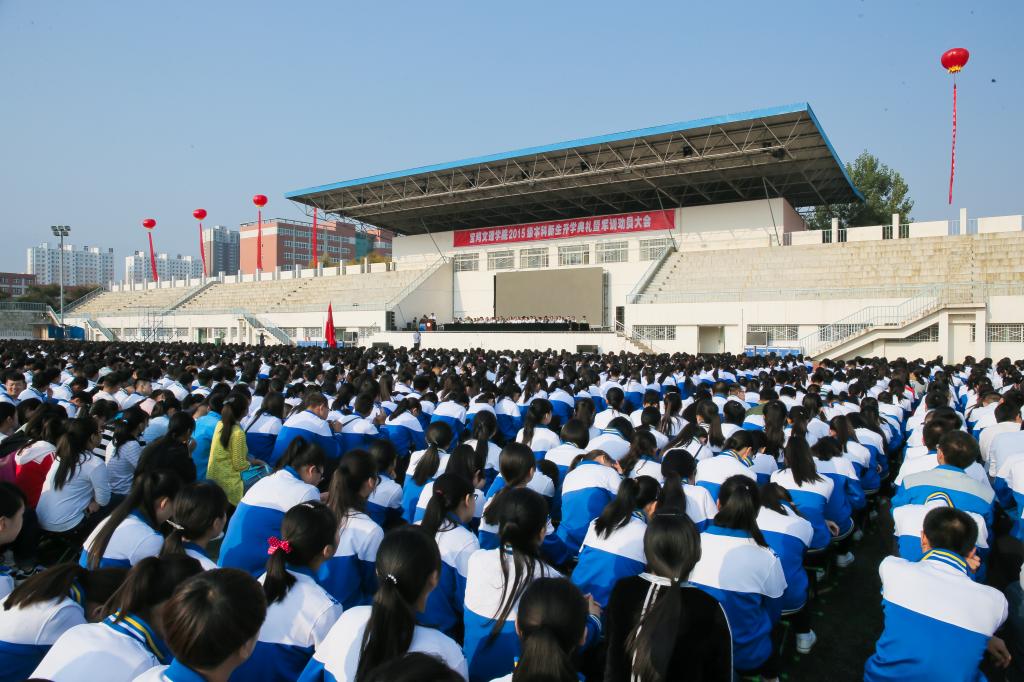 各院、系党总支书记、院长、主任及各职能部门主要负责人,2015级全体本科新生及承担开元新生军训任务的96401部队军训团全体官兵参加了大会。