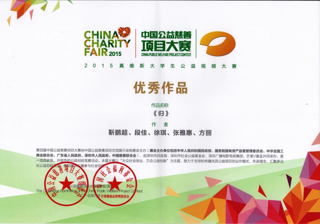 据悉,本次大赛由第四届中国公益慈善项目展示交流会联合湖南广播电视台发起,深圳市民政局、深圳广播电视集团、芒果V基金共同承办,是一项国家级、开放性的公益创投竞赛。本届大赛以“大众社会创业、万众公益创新”的主题,活动旨在丰富当代大学生文化生活,让喜欢影视创作的青年深入了解影像艺术,发现真善美,传播微公益。大赛从4月22日启动以来,历时5个月,共征集作品428部,来自全国125所高校共283支团队参与到大赛中。