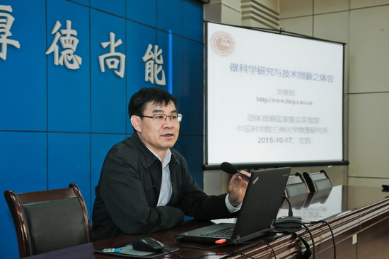 刘维民结合自己多年来科学研究工作的丰富经验,以如何理解科学与技术,如何发现与提出科学问题,如何推进科学研究工作等逐层推进,全面、系统地解读了科学研究与技术创新的魅力与内涵及做好科研工作的方法。他在报告中还特别解读了科研规范与学术诚信问题,强调学术规范对一个科研工作者做人做学问的重要性,号召大家在工作中要以高度的责任感来重视科研规范,以本着尊重科学本身的态度来体现学术诚信。