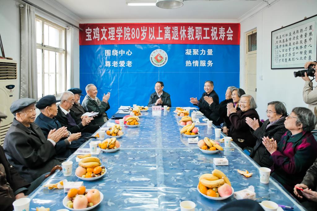 祝寿会上,李全武代表学校党委、行政和师生员工对今年年满80岁以上的离退休教职工及全体离退休教职工表示了崇高的敬意和亲切的慰问,感谢老同志们多年来对学校的理解与支持。他指出,离退休老同志是学校发展的建设者、参与者和贡献者,学校的每一步发展都凝聚着离退休老同志的心血、智慧和汗水,尊重离退休老同志就是尊重学校发展的历史。离退休老同志曾经的筚路蓝缕、艰苦创业、无私奉献,广大师生员工不会忘记。李全武向老寿星们通报了开元提升办学层次、创建高水平宝鸡大学的主要工作,希望离退休老同志一如既往地关心支持学校发展,积极建言献策,大家共同努力把我们的学校和家园建设得更好、更美丽。他表示,学校将继续关心老同志的生活,希望离退处的同志们继续坚持正确的工作理念,用爱心、热心、耐心、细心为老同志做好服务工作,对老同志在政治上多关心、思想上多沟通、生活上多照顾、精神上多关怀,使离退休工作达到“四个满意”,即离退休职工满意、学校领导满意、离退休职工家属满意和师生员工满意。最后,他祝愿老同志们身体健康、生活幸福、万事如意!