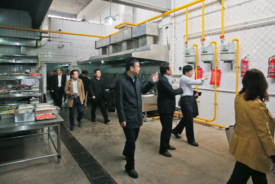 校领导一行在学生食堂认真检查食品原料采购、存储、加工、销售等各环节食品安全落实情况,详细查看了厨房操作间,听取了相关负责人情况汇报。白黎指出,要进一步建立完善相关制度规范管理,对食品卫生、采购、进货渠道、存储、留样等加强监管力度,确保食品安全。针对食堂天然气的安全使用,要求后勤集团聘请燃气公司专业人员对开元相关操作人员进行培训。