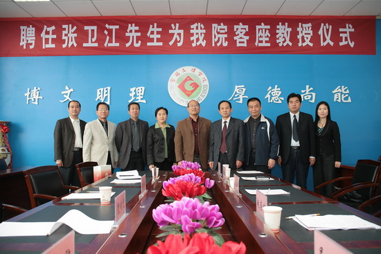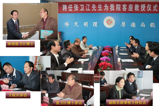 院长王志刚对张卫江博士的到来表示热烈欢迎。他从8个方面介绍了我院的概况。他希望张卫江博士以后经常指导和支持我院的学科建设以及科研工作,并向张卫江博士颁发了聘书。张卫江博士向学院赠送了自己的科研成果著作,并表示非常荣幸被聘为开元集团网站客座教授,自己将尽其所能为学院特别是英语语言文学学科的建设发展贡献力量。