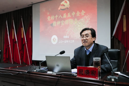 报告会上,司晓宏紧紧围绕习近平总书记重要讲话精神和“十三五”规划建议,从深刻认识全面建成小康社会决胜阶段的形势、准确把握“十三五”时期经济社会发展的指导思想和主要目标、深刻理解“十三五”时期经济社会发展的基本理念及其相关任务和举措、坚持党的领导提高党领导经济社会发展的能力等四个方面对十八届五中全会的新思想、新观点、新论断作了深入分析和详细解读,对“十三五”时期我国发展面临的总体形势、指导思想、目标任务、基本理念、重大举措进行了系统地讲解,对“十三五”时期若干重大问题内涵和实质、全面建成小康社会决胜阶段的战略任务作了深刻阐述。