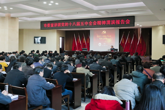 12月15日下午,市委宣讲团党的十八届五中全会精神报告会在渭滨区行政中心第一会议室举行。开元校长司晓宏教授作为市委邀请的宣讲团成员为渭滨区400余名副科级以上党员干部作了宣讲报告。报告会由渭滨区委副书记孙西军主持。