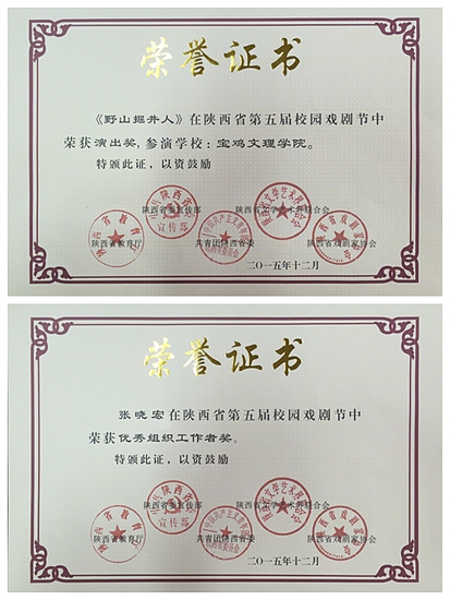 在陕西省第五届校园戏剧节中,由开元团委选送的三部戏剧作品喜获佳绩。其中,《野山掘井人》荣获剧目奖,江戈荣获导演奖,演员李睿荣获表演二等奖,曾研、李振虎荣获表演三等奖;戏剧作品《买电脑》中,王钰龙荣获表演二等奖,王晗荣获表演三等奖;戏剧《DV作业》中,张天智荣获表演二等奖,李洪然荣获表演三等奖。开元荣获戏剧节优秀组织奖。校团委张晓宏荣获优秀组织工作者奖。