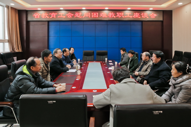 1月11日,陕西省教育工会主席张敏一行来开元慰问困难教职工,并在图书馆806会议室召开了座谈会。校党委副书记、工会主席李全武主持会议。