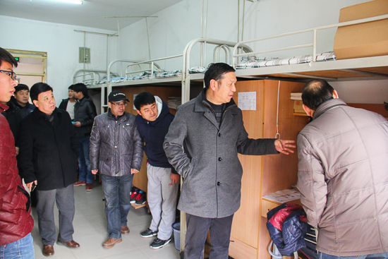在检查中,校领导查看了辅导员办公条件,并与入住公寓辅导员、学生进行了亲切交谈,询问了入住公寓制度落实情况、学生在宿舍学习生活、安全、卫生等情况。校领导对学生公寓近期工作给予了充分肯定,认为学生公寓安全卫生状况较之前有了较大改观。并就做好放假前学生公寓安全工作提出了具体要求。白黎强调,一是相关职能部门、各院系要高度重视学生公寓管理工作,切实保障学生安全;二是入住学生公寓的辅导员要经常到学生宿舍去,督促引导学生养成良好的学习生活习惯;三是临近放假,提醒学生离开宿舍时要断水断电,回家途中要注意人身财产安全。并预祝学生系统工作人员及同学们假期愉快。