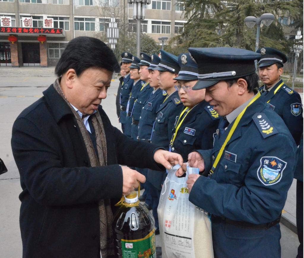 2月1日下午,新春佳节来临之际,党委副书记米晓东看望并慰问了寒假和春节期间坚守岗位的保卫处值班人员及全体校卫队员,向他们送去新春的祝福,并致以节日的问候。