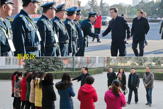 校领导一行先后走访慰问了新、老校区保卫处、物业管理中心、饮食服务中心、学生社区管理中心等部门的工作人员。每到一处,校领导都热情地与各部门值班人员一一握手,向他们送去新年的祝福和春节慰问品。司晓宏代表学校党政向在春节期间坚守岗位、辛勤工作教职工表示衷心感谢,并祝愿他们新春快乐!
