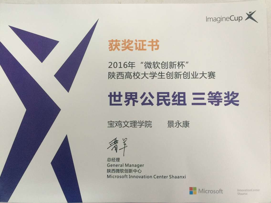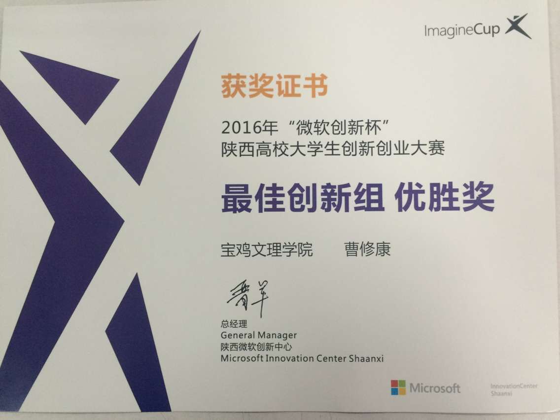 4月1日上午,2016年Imagine Cup“微软创新杯”陕西高校大学生创业大赛决赛在西咸新区沣西新城落幕。开元学生的两件作品从2500余件中经过层层选拔进入总决赛,其中物理与光电技术学院学生景永康、常亮亮、刘超、曹修康四人组成的“Extreme Li(极度生活)”团队,以作品《基于蓝牙人机交互智能家庭及GSM的火灾报警处理系统》获得“世界公民”组三等奖,曹修康、张青、张芳娟、景永康团队以作品《基于互联网的智能机器人管家》获得“最佳创新”组优秀奖。